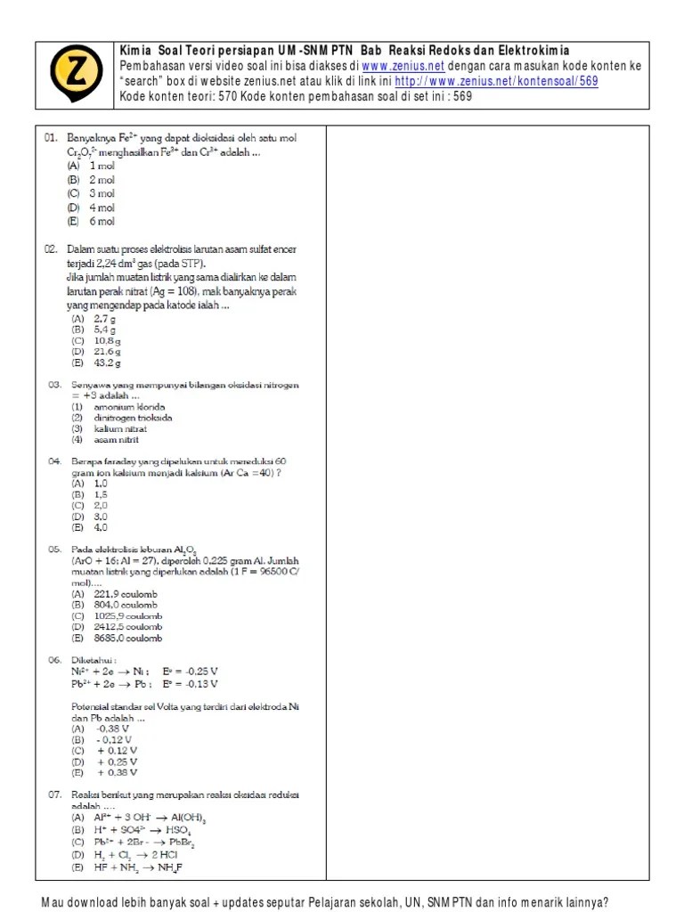 Pembahasan soal un sma ipa bidang studi kimia dengan materi pembahasan reaksi reduksi oksidasi dan elektrokimia autoredoks disproporsionasi penyetaraan . Anoda elektrokimia kelas 12 katoda materi elektrolisis pembahasan soal redoks oksidasi redoks reduksi sel elektrokimia sel elektrolisis sel . Pembahasan soal kimia nomor 38 sbmptn 2018 semua kode soal sel elektrokimia . Materi ini sering muncul di soal ujian masuk ptn baik sbmptn, . Nilai bilangan oksidasi dari cl2 didalam ca(clo2)2 adalah. Al 3 3e al e o 166 volt fe 3 3e fe e o 044 volt reaksi redoks. Mengerjakan soal kimia tentang reaksi redoks akan lebih baik jika dilengkapi dengan jawabannya yang benar. Karena kita perlu mengetahui pemahaman kita dari . Aturan penyetaraan reaksi redoks adalah sebagai berikut : Materi reaksi redoks merupakan materi yang esensial untuk di pelajari. Bab2 reaksi redoks dan elektrokimia kimia kelas xii. 10 soal redoks pilihan ganda dan pembahasannya yang kami sajikan . Diketahui sebuah reaksi dalam suasana basa seperti .